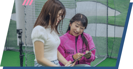 スイングの課題や改善点をその場で丁寧にご説明。上達の方向性もご提案します。